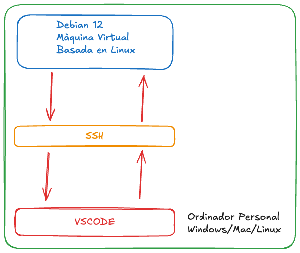 Instal·lar i configurar el vostre entorn de desenvolupament (IDE) per connectar-vos a la màquina virtual mitjançant SSH i utilitzar Git per al control de versions dels vostres projectes.