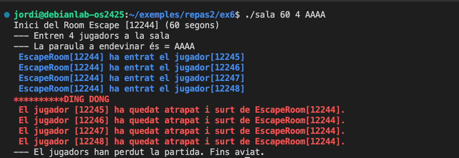 Implementa un scape room competitiu on cada jugador és un procés independent que competeix per trobar la clau abans que els altres. Al final, de la partida, s’ha de mostrar un ranking amb el nombre d’intents i el temps emprat per cada jugador.