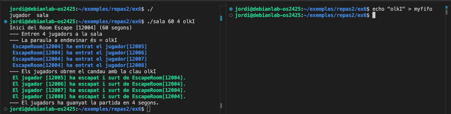 mkfifo(). - Utilitza aquesta FIFO per escriure i llegir les claus generades pels jugadors enlloc del pipe.