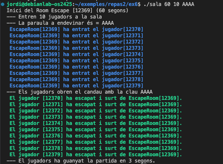 En aquest laboratori us proposem implementar un joc senzill d’Escape Room utilitzant processos i comunicació entre ells mitjançant pipes. Per fer-ho, haureu de crear un procés pare que gestioni la partida i diversos processos fills que representin els jugadors. La idea és que els jugadors intentin endevinar una clau secreta abans que s’acabi el temps.