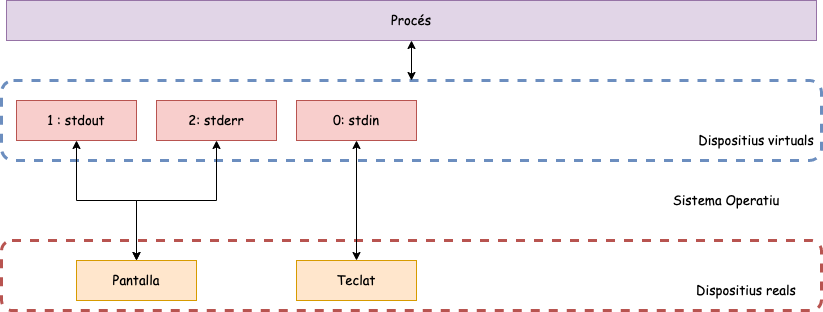 El processos utilitzen els descriptors de fitxers per accedir als dispositius un cop ja han estat oberts per llegir i escriure informació.