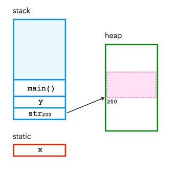 És una estructura LIFO (Last-In,First-Out). La pila és una regió especial de memòria i la gestiona automàticament la CPU, de manera que no cal assignar ni desassignar memòria. La memòria de pila es divideix en trames successives on cada vegada que es crida una funció, s’assigna una nova trama de pila.