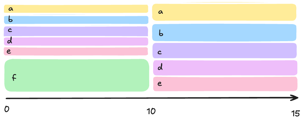 S = ∅Si \(n\) tasques han de compartir un recurs (CPU) \(\Rightarrow\) cadascun rep, per defecte, una part de \(\frac{1}{n}\) del recurs.