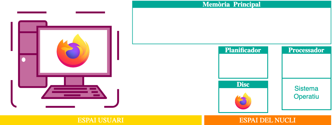 Assumiu un sistema Linux on volem executar únicament Firefox, assumint que la resta de processos del sistema operatiu s’executen en un altre processador.