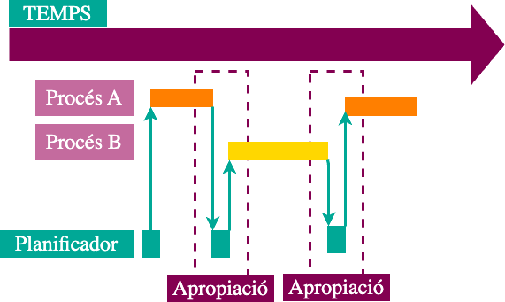 Apropiatiu: un procés curt pot interrompre un procés més llarg.