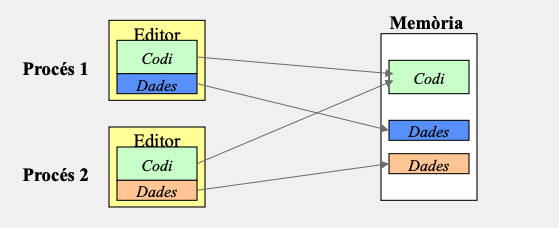 Per exemple, un segment de codi pot ser compartit per diferents processos, mentre que un segment de dades pot ser protegit per un procés específic.