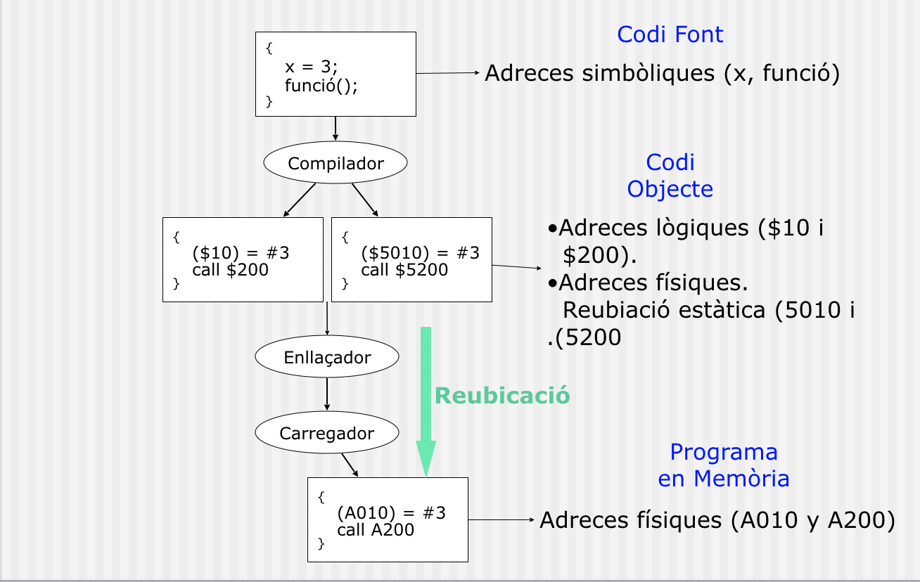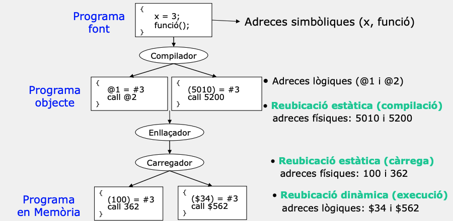 Les adreces físiques del programa es generen durant la compilació. El lloc on el procés s’executarà és conegut i fix.