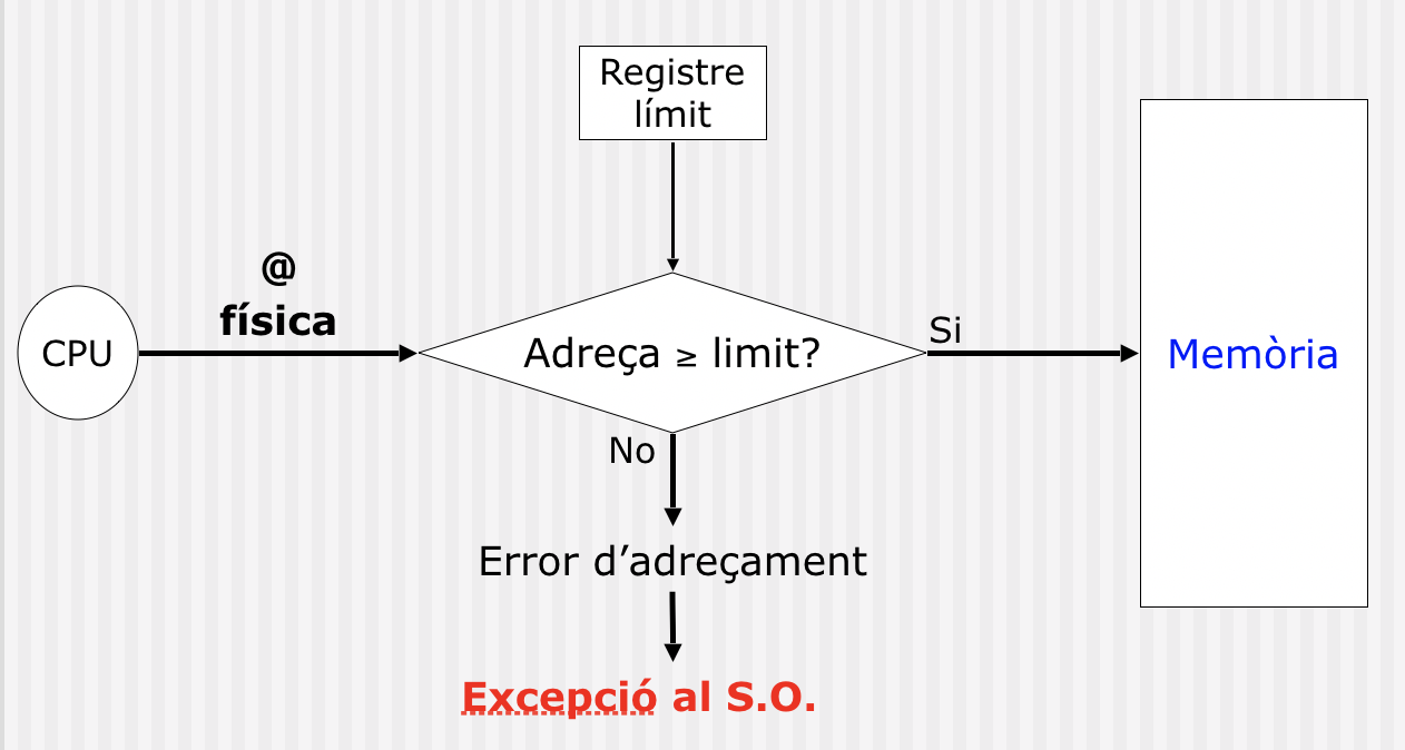 Imaginem un sistema operatiu sense cap mecanisme per gestionar la memòria. Quan un programa s’executa, pot executar una instrucció com MOV REG1, 1000, que mou el contingut de la memòria física 1000 a REG1.